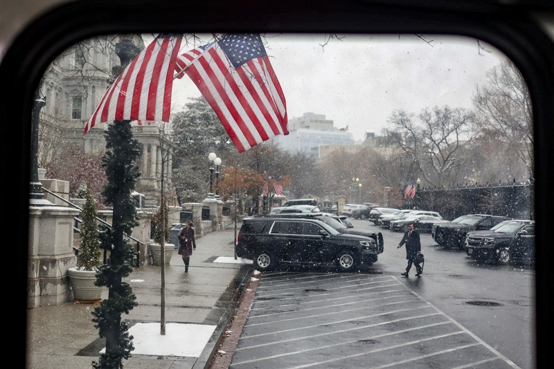 12月5日,在美国首都华盛顿,人们在雪中出行。\n 新华社发